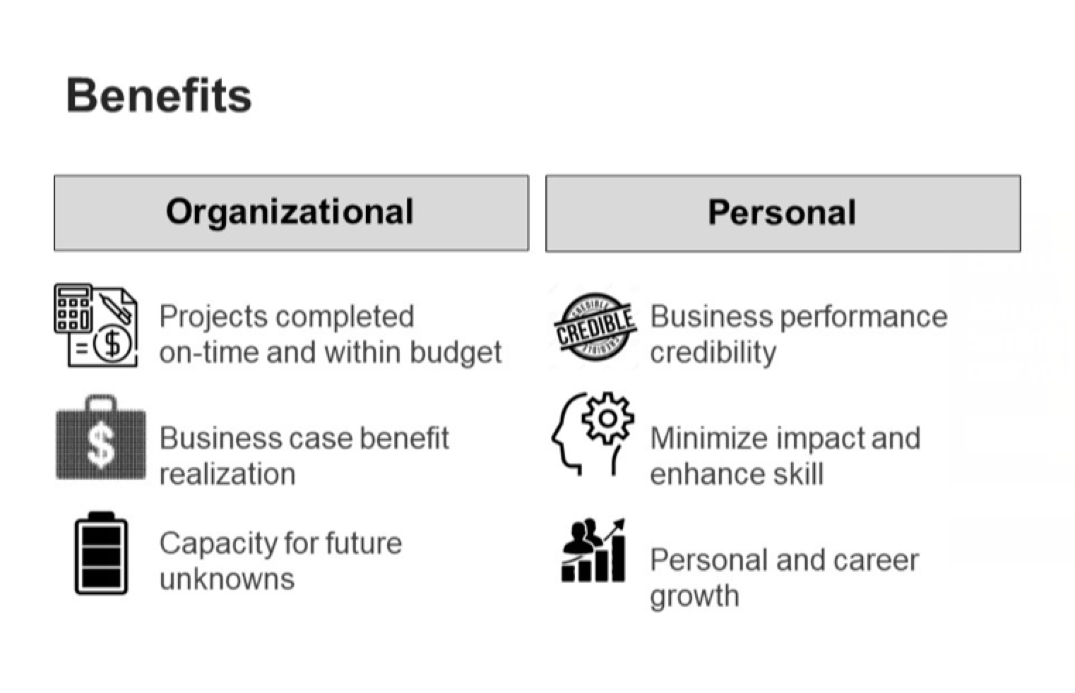 - Attain business case realization